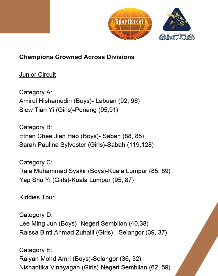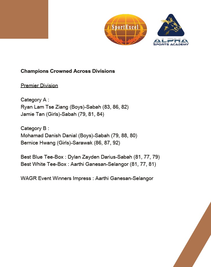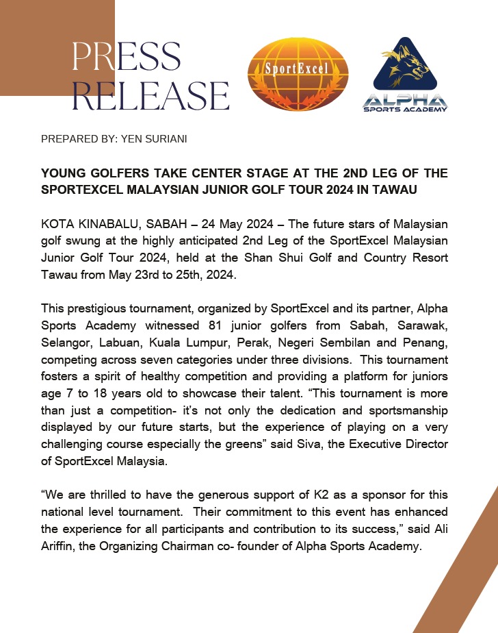 SABAH JUNIOR MASTER Series 2 will be held 05 October 2024 at Par 3 Likas Driving Range, 0630am Read More » August 25, 2024 No Comments